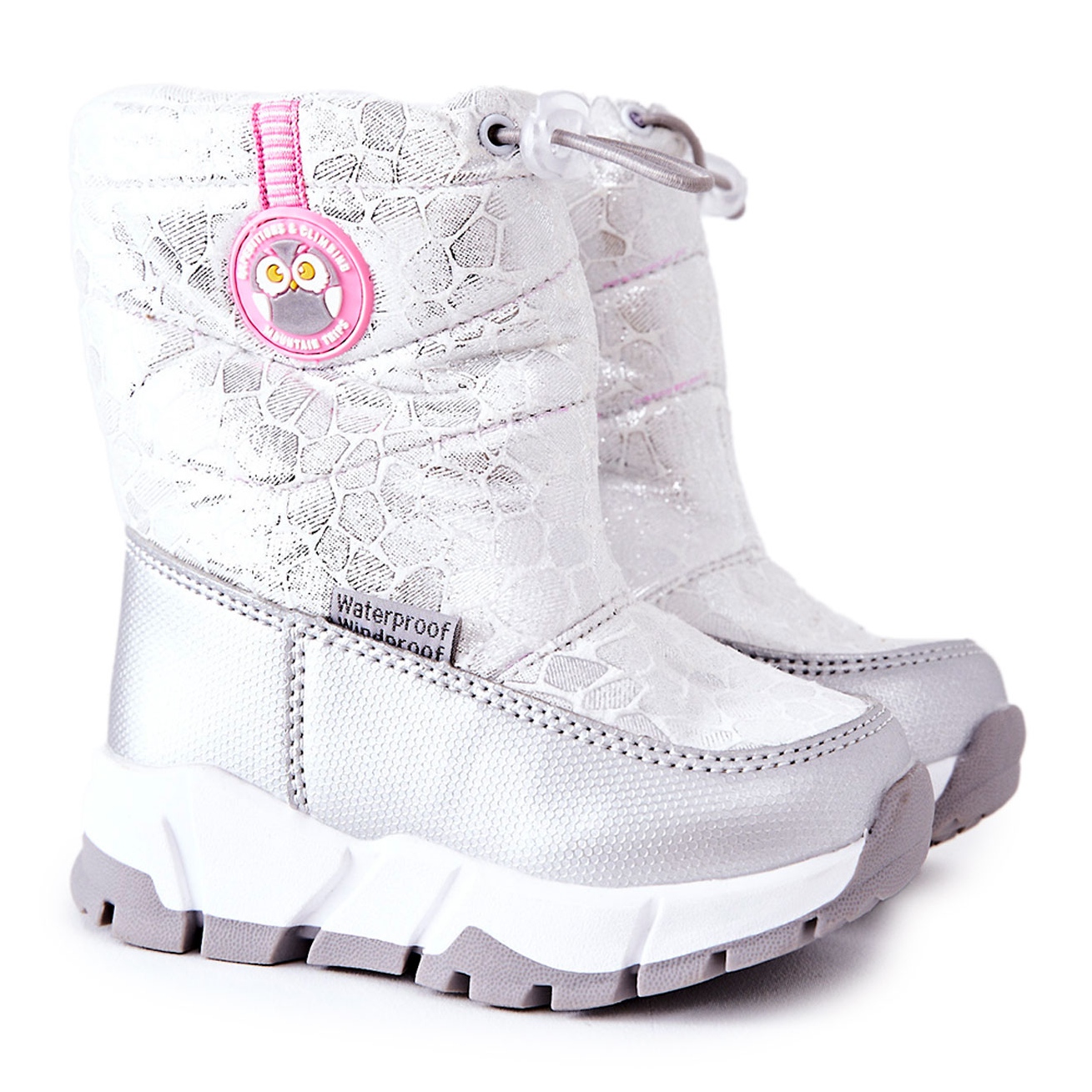 Yksityiskohdat: PJ2 Lasten lämpimät lumisaappaat, joissa vetoketju hopea-valkoinen