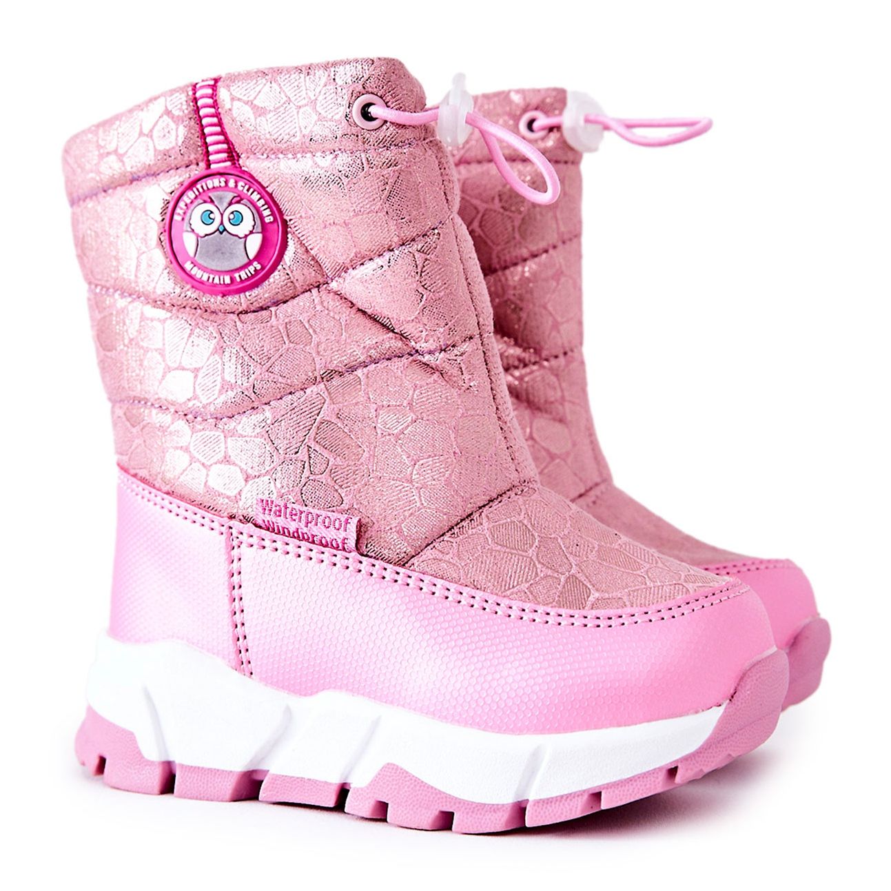 Esittelyssä vaaleanpunaiset PJ2-lasten lumisaappaat, jotka sopivat täydellisesti pakkaspäiviin! Nämä eristetyt kengät on suunniteltu lasten mukavuutta ja toimivuutta ajatellen. Lumikenkien sisäpuoli on vuorattu pehmeällä lampaannahalla, joka suojaa tehokkaasti kylmältä ja on miellyttävä koskettaa.