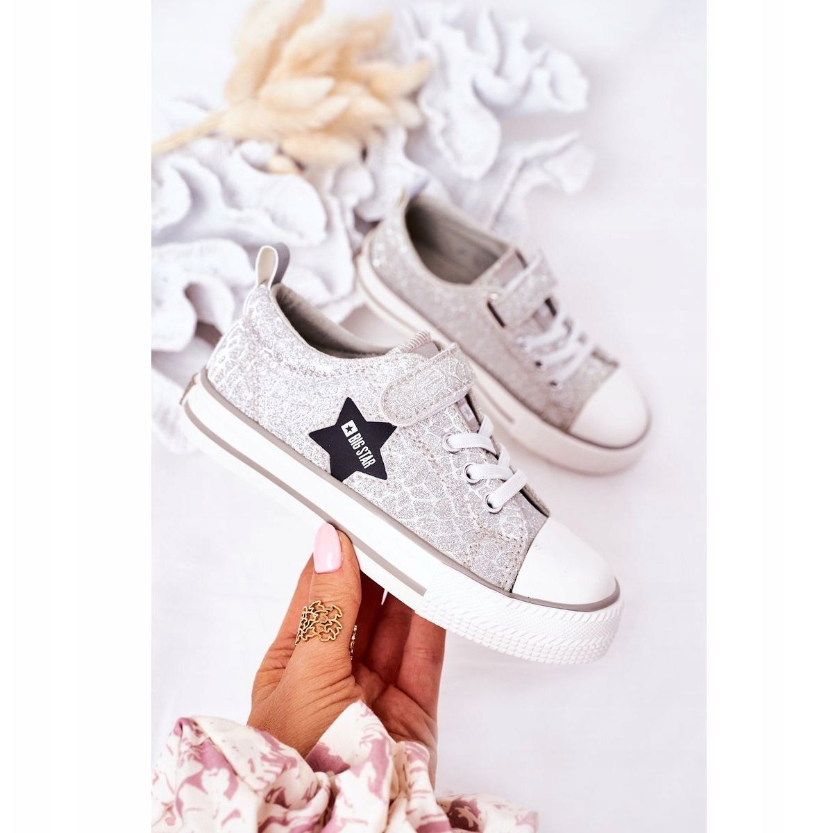 Lasten tarranauhalenkkarit Big Star HH374025 tyylikkäässä hopeanvärisessä värissä ovat täydellinen valinta pienille muodikkaille. Tunnetun BIG STAR -brändin luomissa tennareissa yhdistyvät moderni muotoilu ja toimivuus, mikä takaa mukavuuden jokapäiväisessä käytössä.