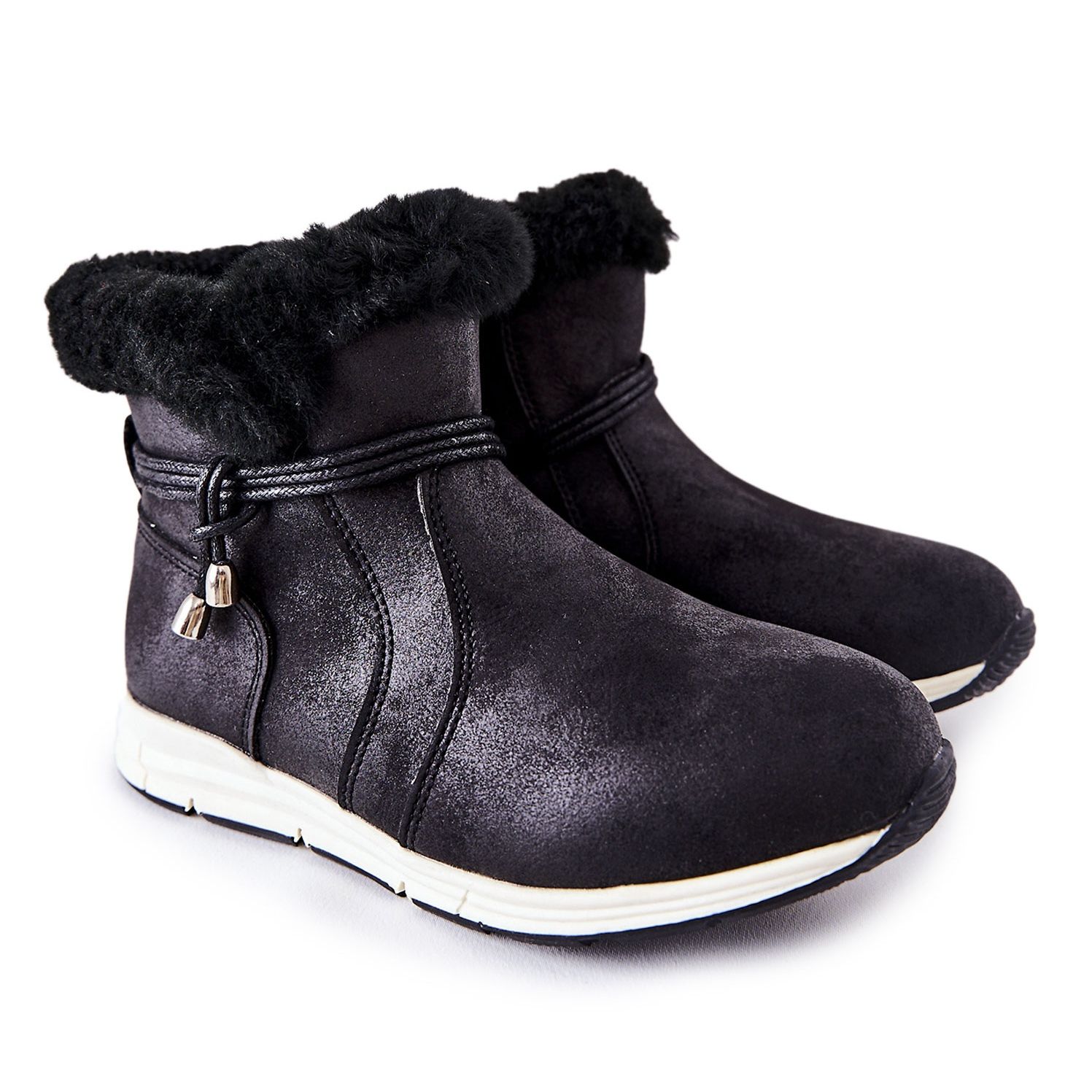 Lasten saappaat Snow Boots Big Star BB374056bs - musta, lämmin ja tyylikäs, täydellinen kylmiin päihin. Valmistettu mokkanahasta ekologisesta nahasta, eristyksellä pehmeän jalkineiden muodossa, ne tarjoavat mukavuutta ja suojaa kylmää vastaan. Kiinnitetty liukusäätimellä, koristeellinen naru yläosassa ja Big Star -logo linnassa - käytännöllinen ja esteettinen.