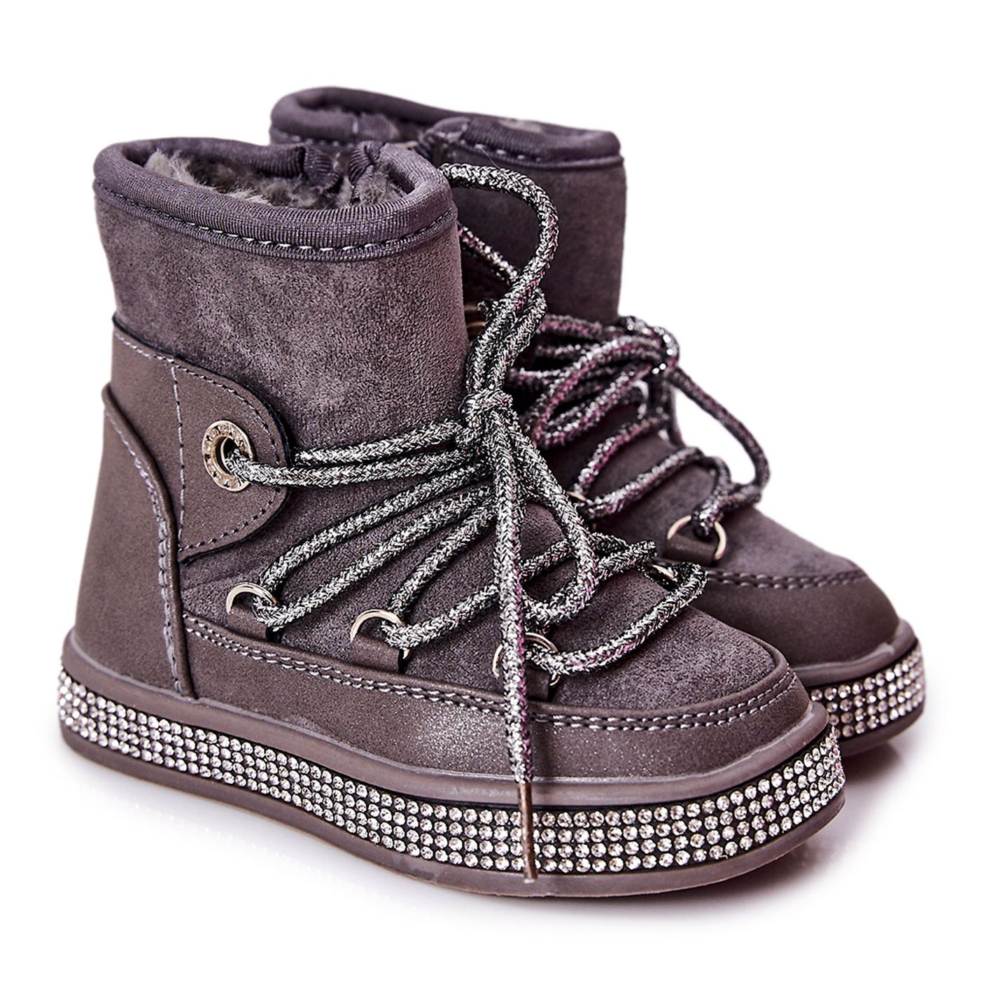 Yksityiskohdat: Lasten lumilaitteet harmaiden zirkonien kanssa harmaa