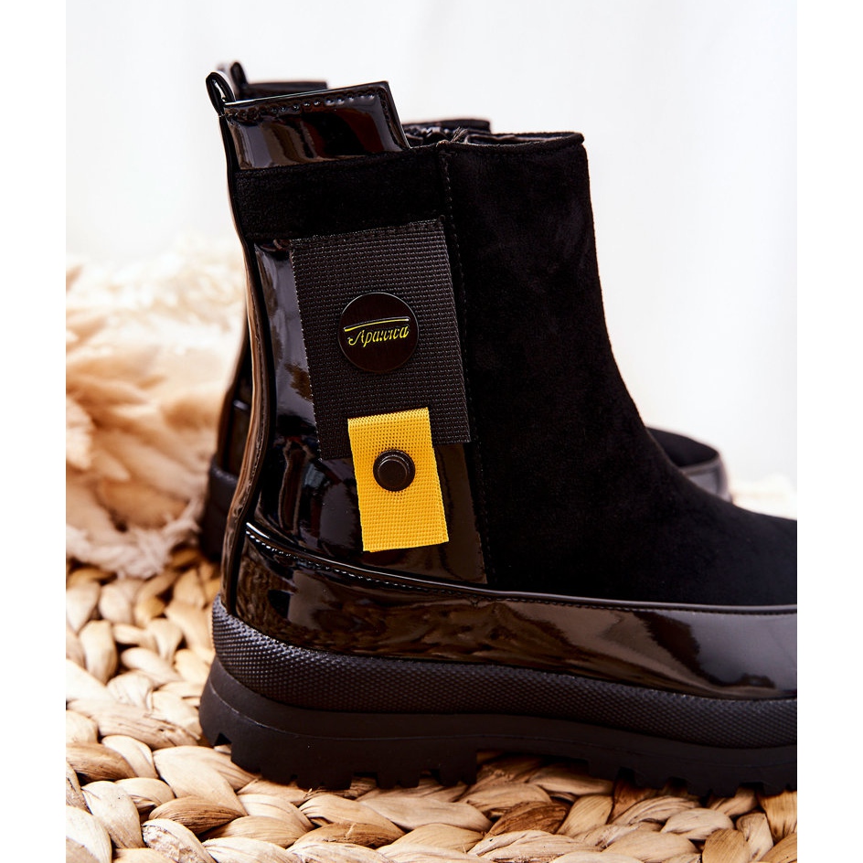 Kengän päällinen on valmistettu laadukkaasta ekologisesta kiiltonahasta ja mokkanahasta, mikä saa ne näyttämään erittäin tyylikkäiltä. Mustat nilkkurit sopivat täydellisesti erilaisiin tyyleihin, rento ja tyylikkäämpiin, ja ne lisäävät tyylikkyyttä mihin tahansa asuun.