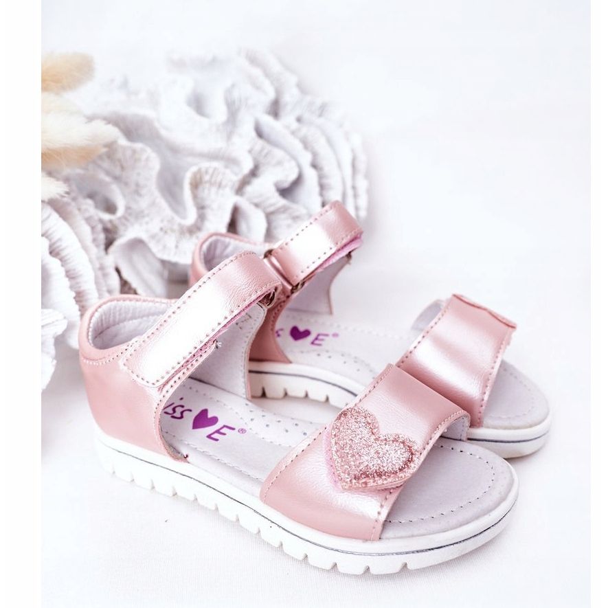 Yksityiskohdat: PE1 Lasten sandaalit vaaleanpunaisella kulta Velcro -tarralla vaaleanpunainen