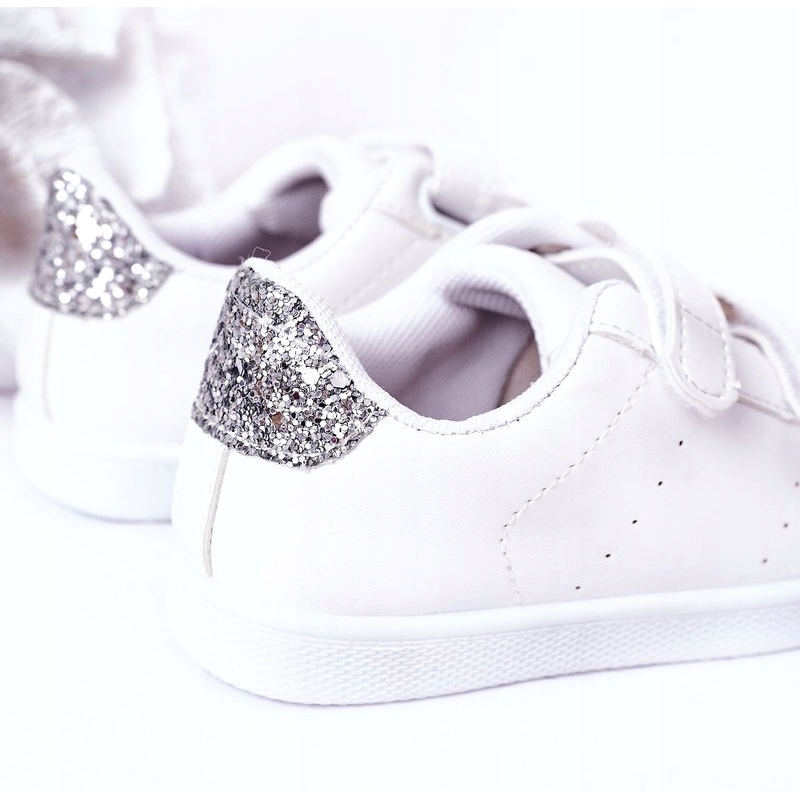 Yksityiskohdat: Lasten tarranauhalenkkarit, valkoinen ja hopea