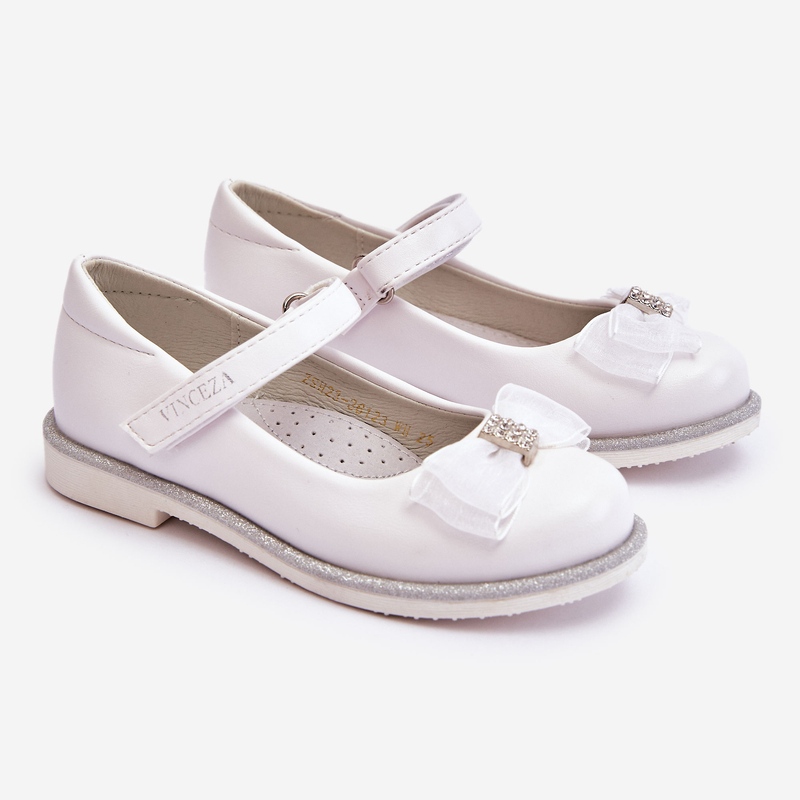Yksityiskohdat: Vinceza Lasten tarranauhat balerinat koristeellisella rusetilla, valkoinen Nadia