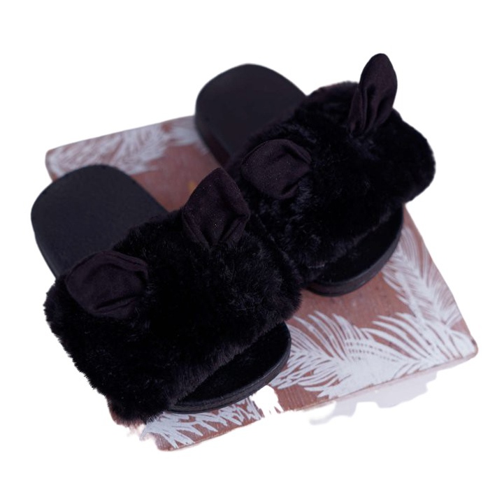 Yksityiskohdat: FRROCK Lasten tohvelit turkista ja vaurioista Musta Thoa