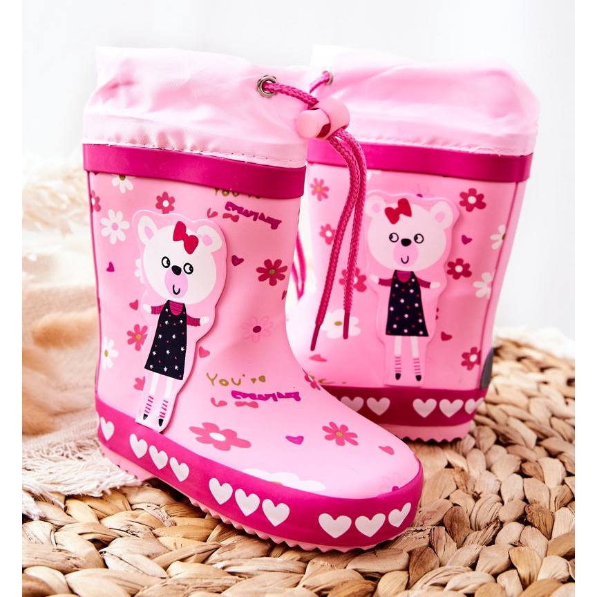 Esittelemme ihania lasten kumihelmiä kauniissa vaaleanpunaisessa värissä söpöllä nallekuviolla - täydellinen valinta sadepäiviin! Nämä Wellingtons-housut eivät ainoastaan suojaa tehokkaasti vedeltä, vaan lisäävät tyyliä mihin tahansa sateiseen asuun. Valmistettu korkealaatuisesta kumista, ne takaavat kestävyyden ja käyttömukavuuden, mikä on erityisen tärkeää aktiivisille lapsille.