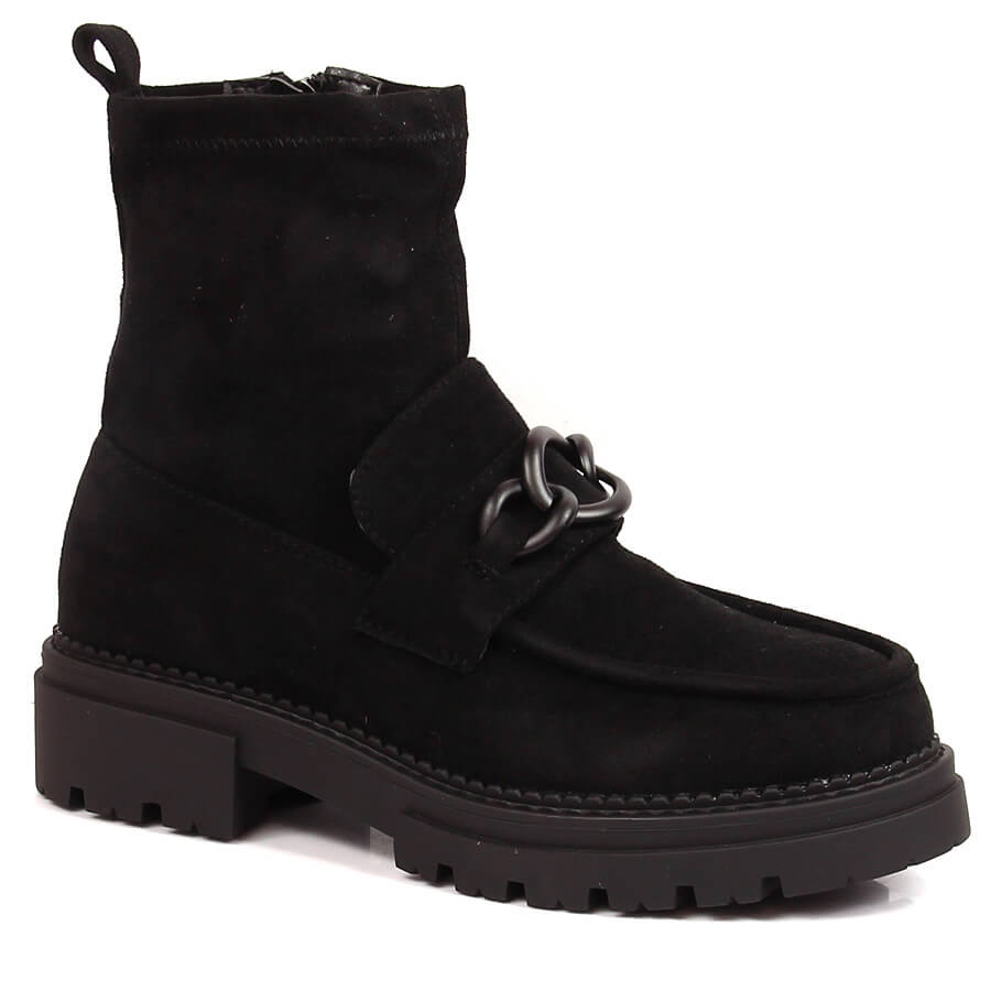 - Universal Design: Klassiset mustat värit ja hienovarainen ketju saavat kengät vastaamaan sekä farkkuja että turkkia sekä enemmän feistyjä tyylejä nahkaelementeillä.