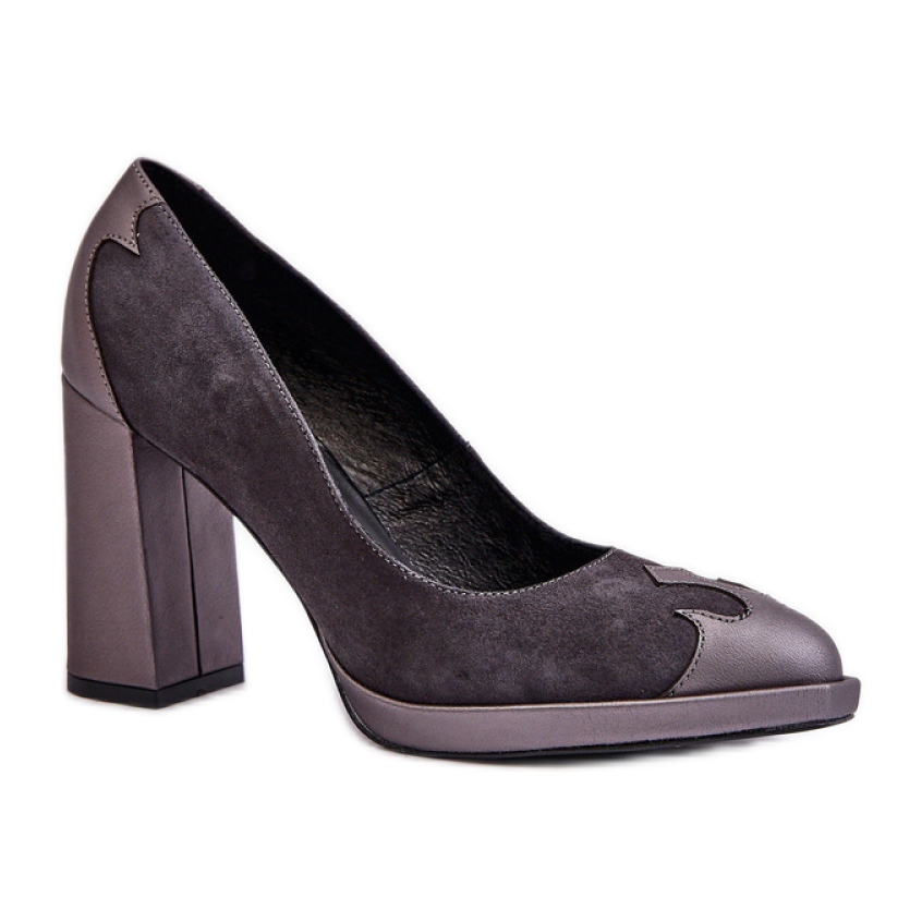 Esittelemme pumput Laura Messi -viestissä tyylikkäässä harmaassa värissä, jotka ovat täydellinen yhdistelmä klassikoita, mukavuutta ja modernia suunnittelua. Nämä tyylikkäät kengät, jotka on valmistettu luonnollisesta mokkanahasta, kiinnittävät huomiota kaikkiin yksityiskohtiin, ovat täydellinen täydennys jokaiseen vaatekaappiin.