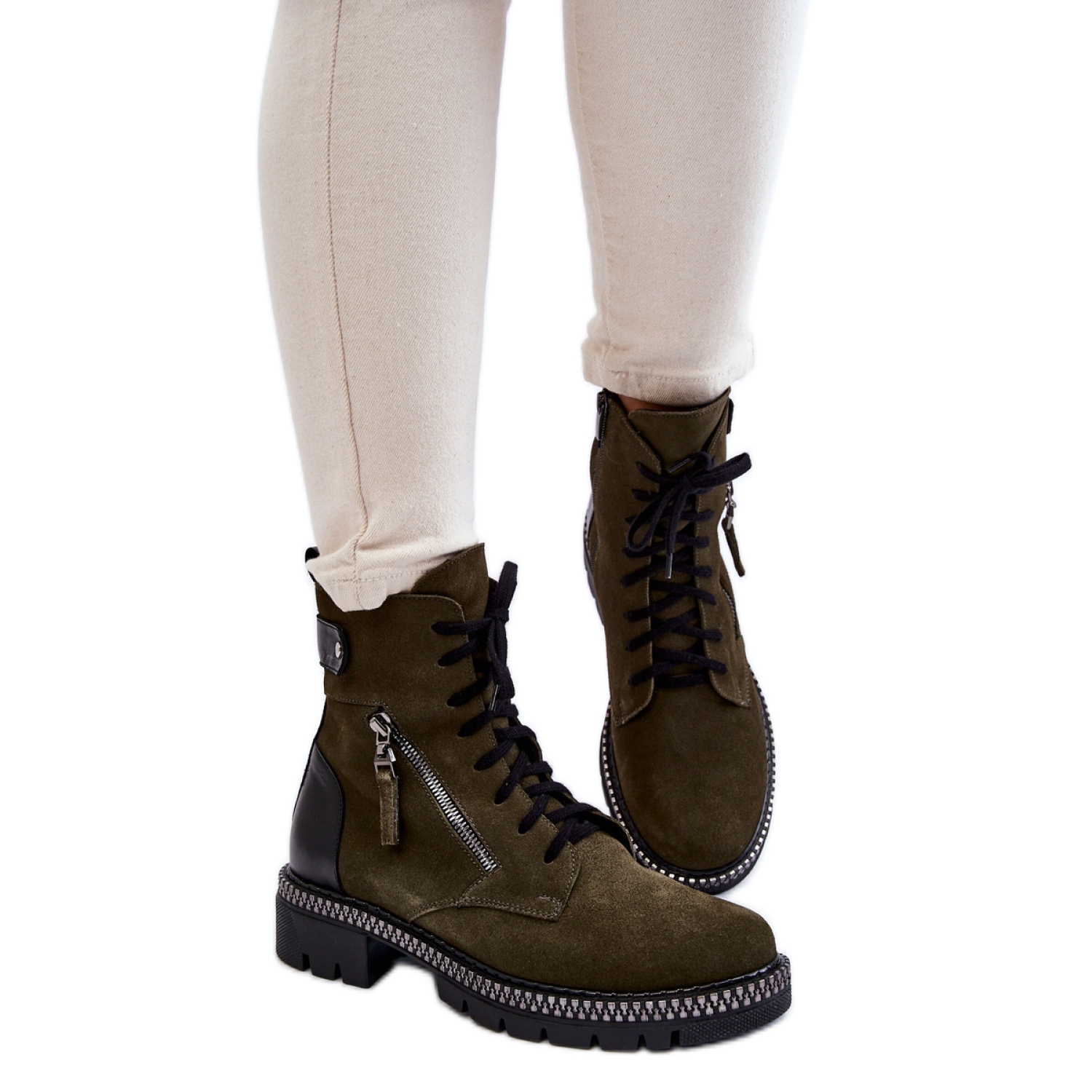 Yksityiskohdat: Laura Messi Vihreät mokkanahkaiset eristetyt nilkkurit