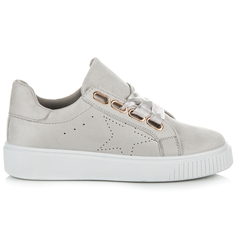 Ideal Shoes Grey Ribbon Sneakers ovat täydellinen esimerkki muodikkaista kengistä, joissa yhdistyvät tyyli ja mukavuus. Sijoita tähän ainutlaatuiseen malliin ja nauti muodikkaasta lookista joka päivä!