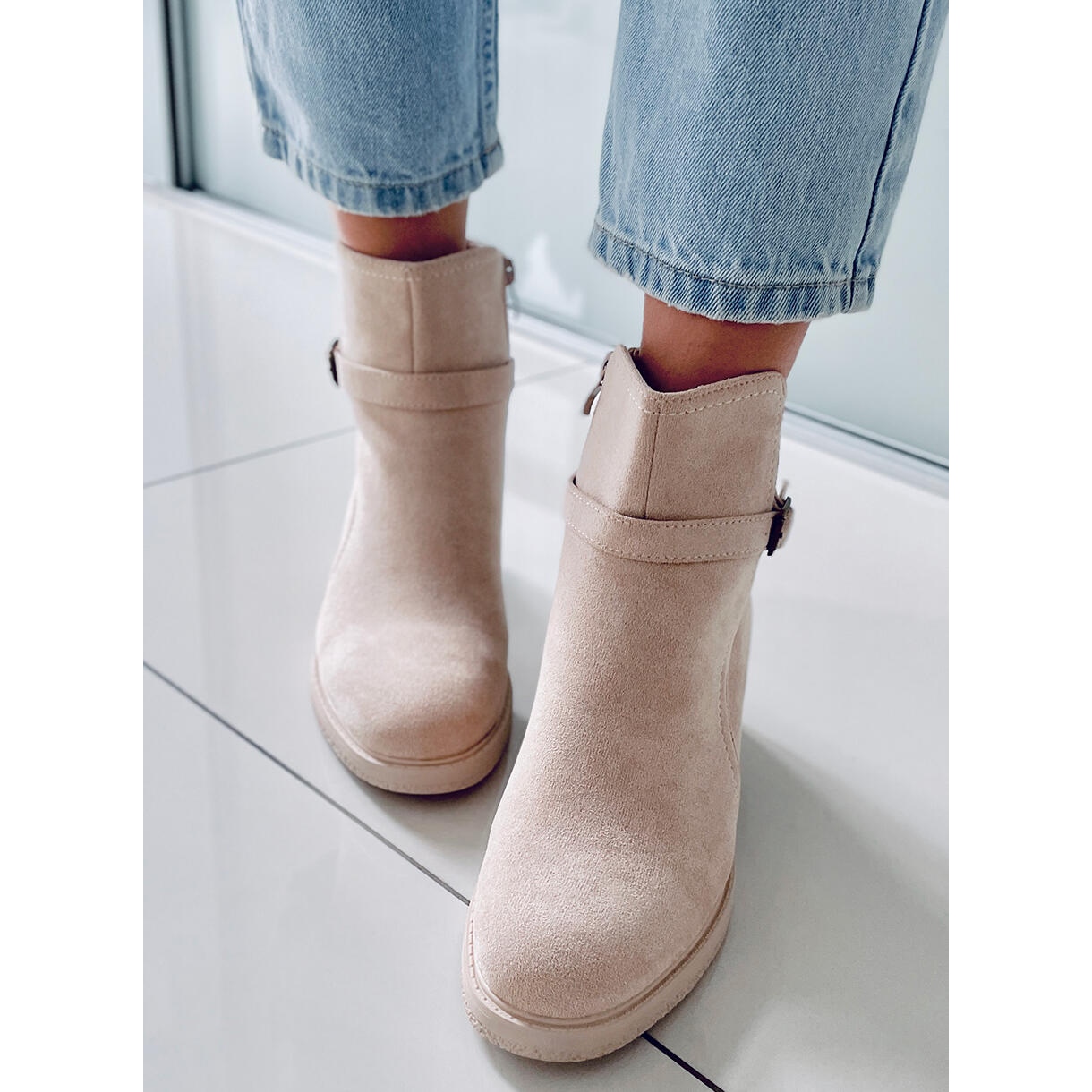 Yksityiskohdat: BM Leveäkorkoiset saappaat Aretha Beige