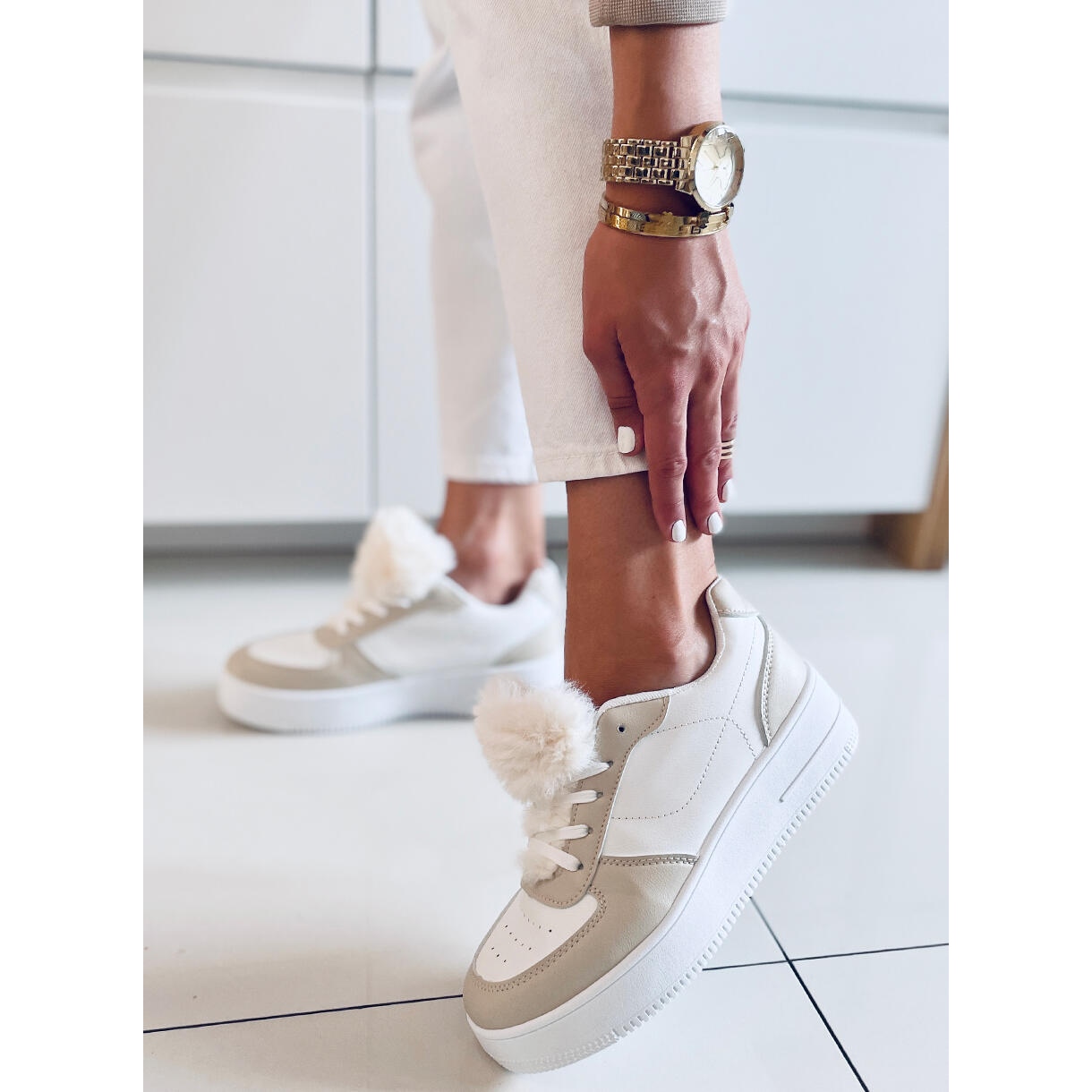 Yksityiskohdat: PA1 Lilith Beige naisten tennarit valkoinen