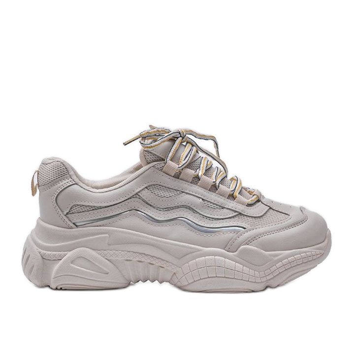 Nämä ovat beigenväriset Lilly-urheilulenkkarit, jotka ilahduttavat varmasti jokaista muodikkaan ja mukavien kenkien ystävää. Niiden ainutlaatuinen muotoilu erottuu beigen ja harmaan värien yhdistelmästä holo-sävyisissä lisävarusteissa, mikä antaa niille modernin ja raikkaan ilmeen. Tennareille on ominaista korkea, 4 senttimetrin pohja, mikä tekee niistä paitsi tyylikkäitä, myös mukavia käyttää.