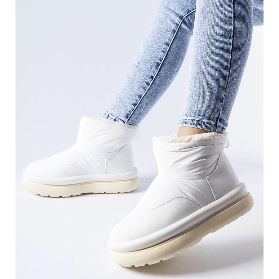 Valkoiset eristetyt Linwood -lumikengät (malli LX23112) - tyyli ja lämpö talveksi. Näissä naisten lumilaskengissa yhdistyvät moderni, tyylikäs ulkonäkö käytännöllisiin ratkaisuihin kylmiin päiviin. Ulkopuolelta, viimeistelty ekologisella nahkalla, stabiililla kumipohjaisella valkoisella, tarjoavat suojaa kosteutta ja käytön kestävyyttä vastaan. Liukastettu rakenne ja pyöreä varvas takaavat mukavan aseman ja mukavuuden koko päivän.
