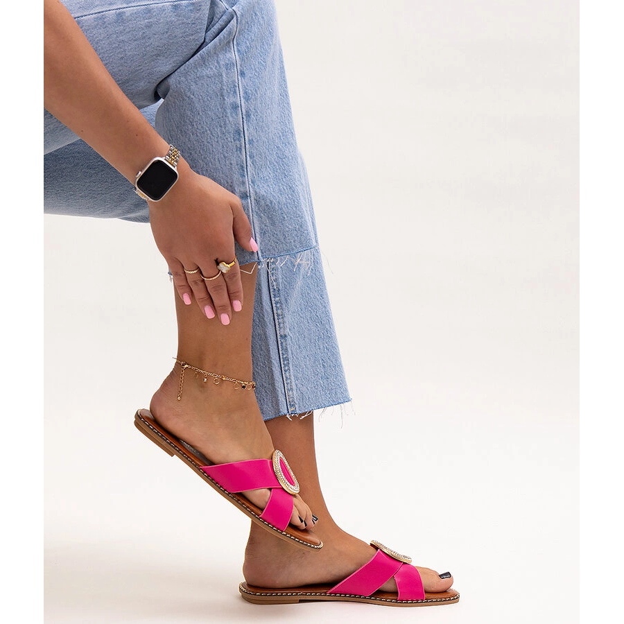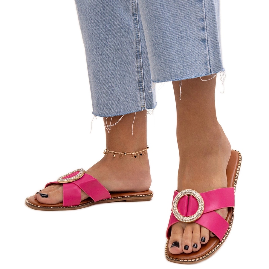 Salimba -strassissa sisustetut tohvelit vaaleanpunaisessa strassissa ovat täydellinen valinta kesäpäiviin, joissa yhdistyvät mukavuus muodikkaaseen tyyliin. Heidän liukastumissuunnittelu mahdollistaa nopean ja kätevän asettamisen, mikä tekee heistä erinomaisia seuralaisia lomakävelyjen tai rentoutumisen aikana rannalla. Pyöreä nenä antaa läpät modernin ilmeen, joka varmasti vetää silmäsi.