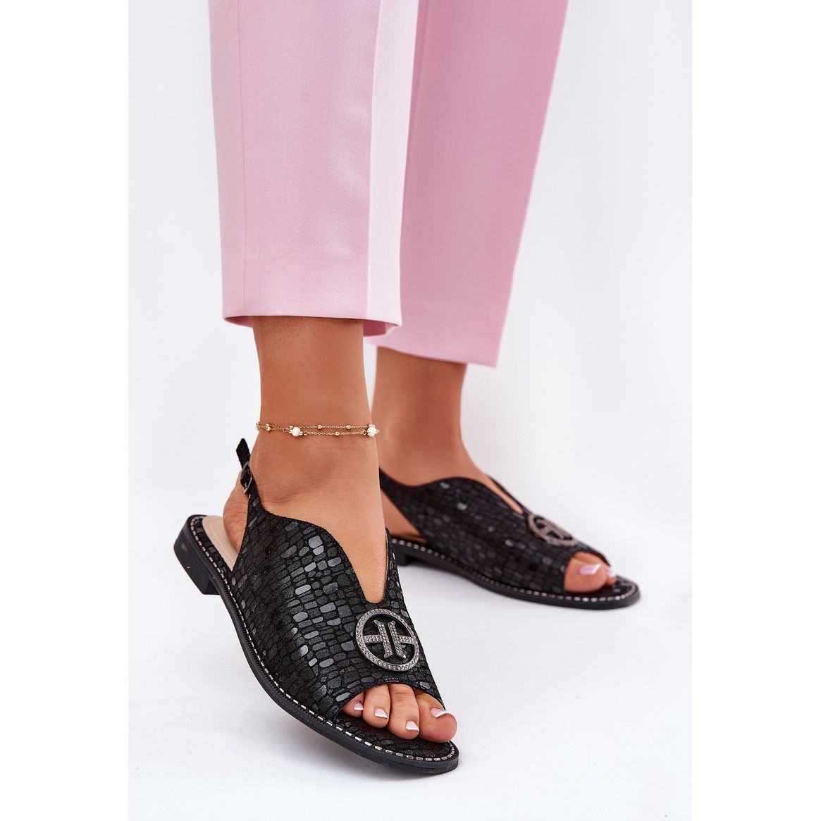 S.Barski S.Barski Litteäkorkoiset nahkaiset sandaalit, joissa koriste S. Barski Kv51-094 mustasta