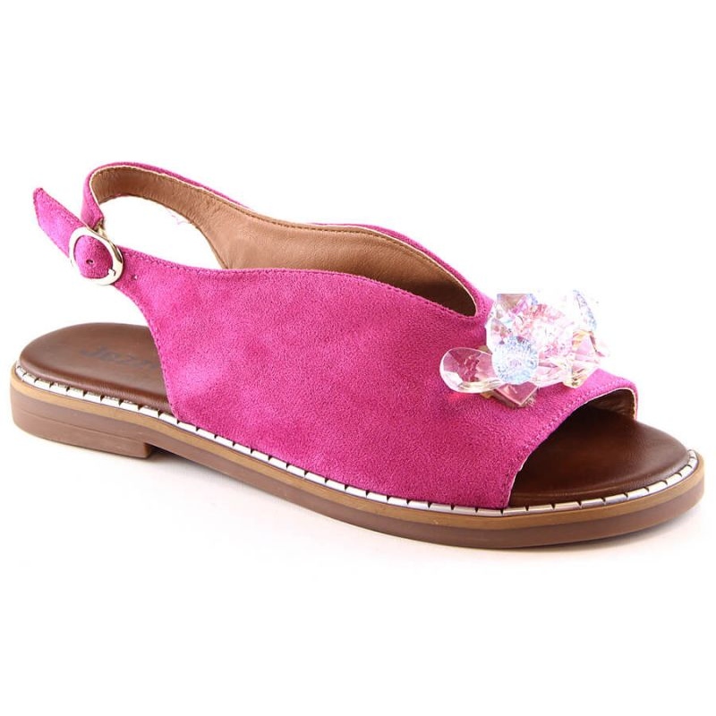Jezzi Litteät mokkanahkasandaalit kristalleilla Jezzi W RMR2266-2 fuksia vaaleanpunainen