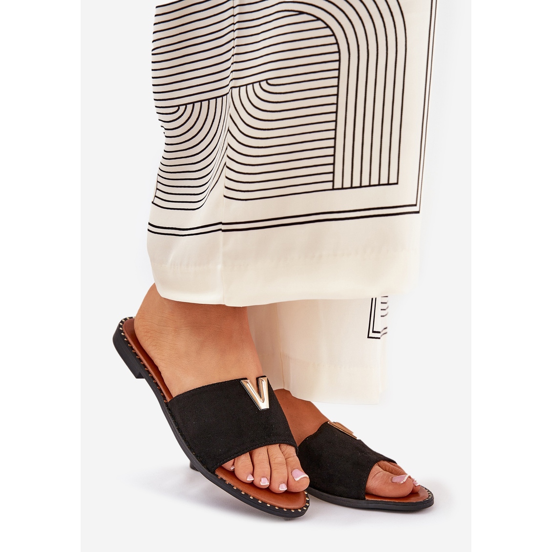 Yksityiskohdat: Litteät naisten flip flops koristeettavat yksityiskohdat mustat