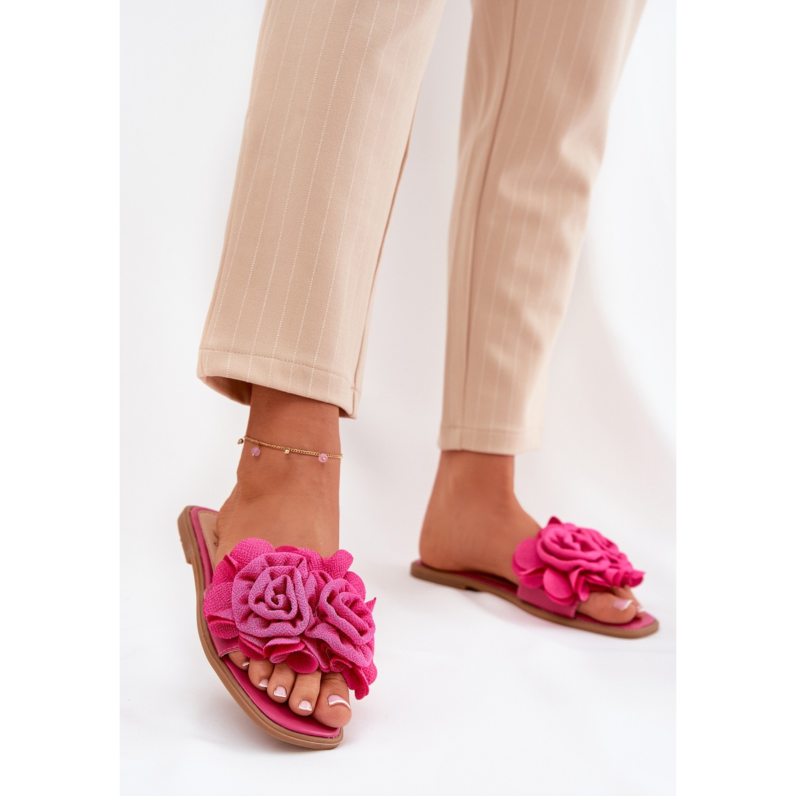 Yksityiskohdat: Litteät naisten flopit koristeellisilla fuksiakukilla vaaleanpunainen