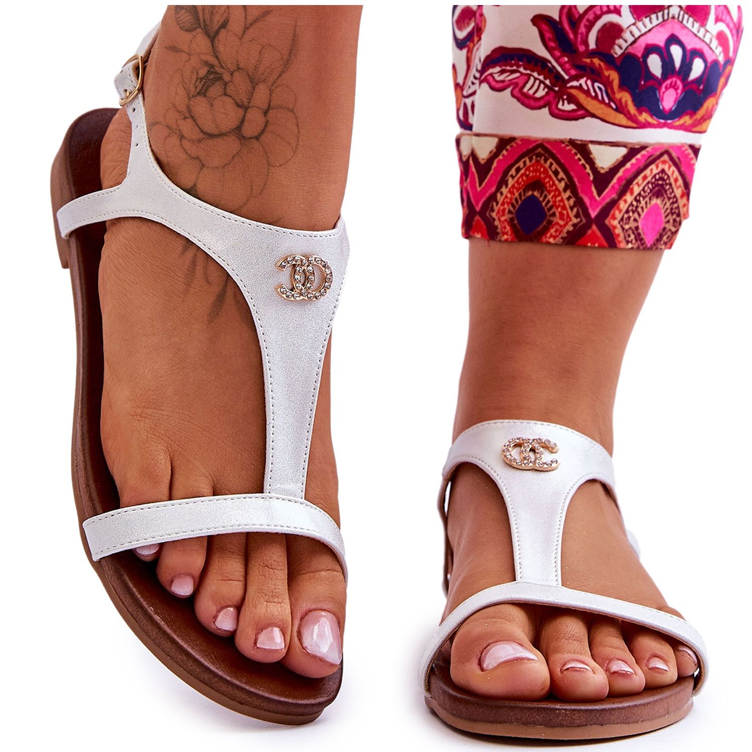 Litteät sandaalit koristeella S. Barski KV-5541-45-SILVER