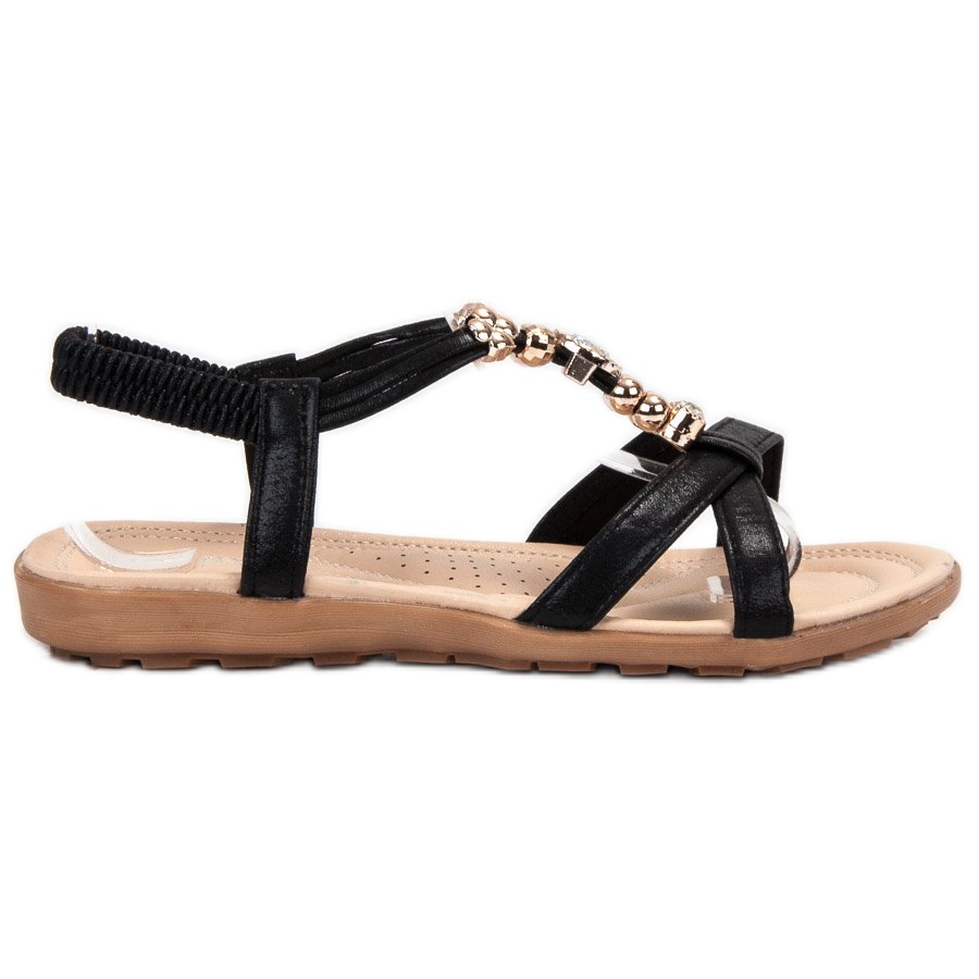 Yksityiskohdat: SHELOVET Litteät sandaalit koristeilla musta