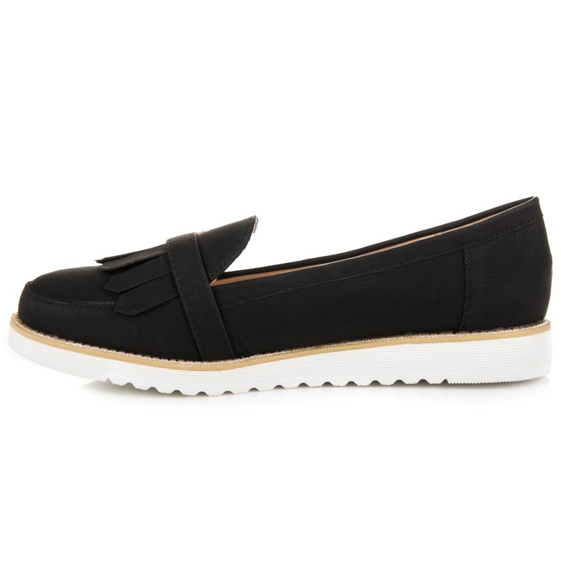 Valitse Vices-loaferit ja nauti tyylin, mukavuuden ja toimivuuden yhdistelmästä, joka on olennainen jokaisen naisen vaatekaappi. Mustat mokasiinit koristesoljella ovat pakollisia jokaiseen vuodenaikaan!