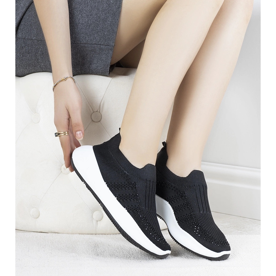 Mustat lenkkarit liukastivat lolly-tyylisiä ja mukavuuksia joka päivä. Lisätty rakenne, jossa on joustava yläosa, mukautuu täydellisesti jalkaan varmistaen mukavuuden ilman sitoutumista. Malli, joka on koristeltu varovasti hohtavilla elementeillä (paljetit/strassit), lisää jokaisen kesän tyylin rikkoutuneen aksentin.