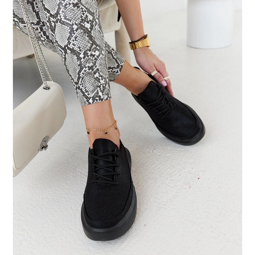 Löydä epätavalliset mustat lenkkarit Lori -alustalta, joka yhdistää modernin suunnittelun poikkeuksellisella mukavuudella. Metallisen viimeistelyn ansiosta nämä kengät saavat ainutlaatuisen, muodikkaan hahmon, joka sopii täydellisesti uusimpiin suuntauksiin. Avointyöt eivät vain anna heille keveyttä, vaan myös tehokkaasti ilmaa, mikä tekee heistä loistavan valinnan kuumille kesäpäiville.