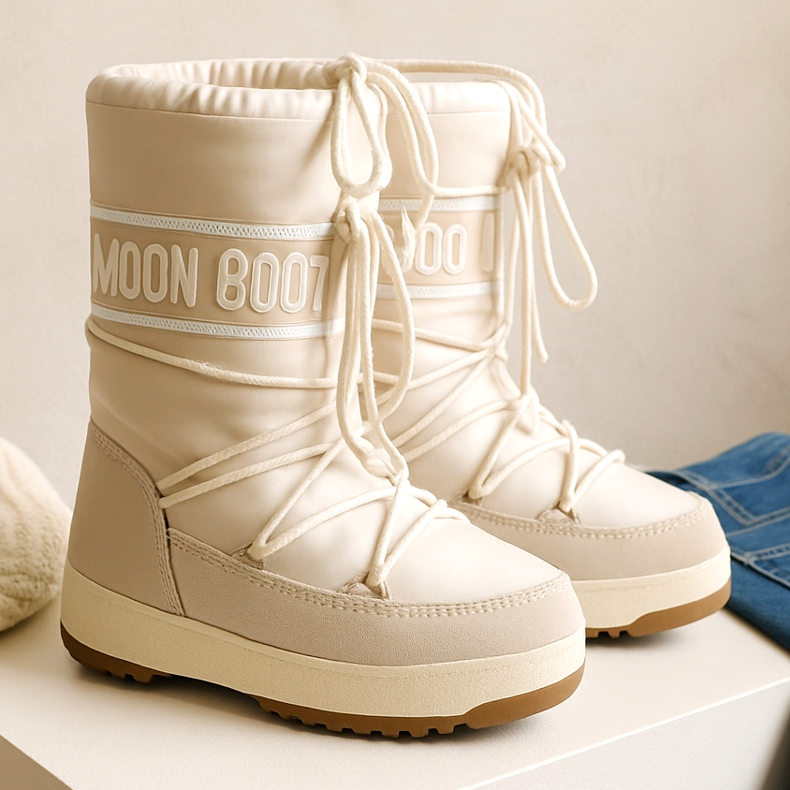 Boho-tyylin ja luonnonmateriaalien ystäville lumisaappaat, kuten Inuikii tai UGG, ovat täydellisiä. Valmistettu lampaannahasta, sidottu paksuilla nauhoilla, ne sopivat täydellisesti villatakkien ja mom fit -farkkujen kanssa. Tällä kaudella beigen, karamellin ja suklaan sävyiset mallit hallitsevat. Ne ovat uskomattoman lämpimiä ja mukavia – kuin kävelisi pilvessä, vaikka ulkona olisi pakkasen.