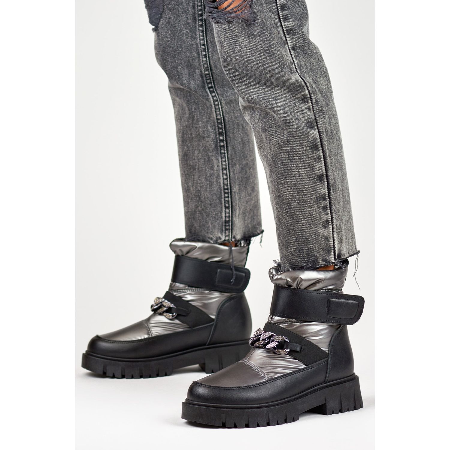 16 cm: n yläosan korkeus takaa vankan tuen nilkkaan, suojaamalla sitä kylmältä, ja 4 cm: n korko korko lisää eleganssia menettämättä vakautta. Tarranauhan kiinnitys antaa sinun nopeasti laittaa ja ottaa sen pois, mikä on erittäin käytännöllinen talvitaamuna. Pyöreä nenä antaa kengille modernin hahmon, jonka ansiosta ne sulautuvat täydellisesti erilaisilla tyylillä.