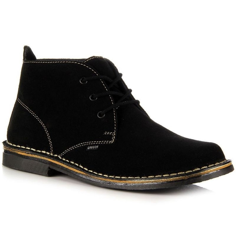 - Malli: Miesten nahkaiset mustat saappaat M Gregor GRE1041A