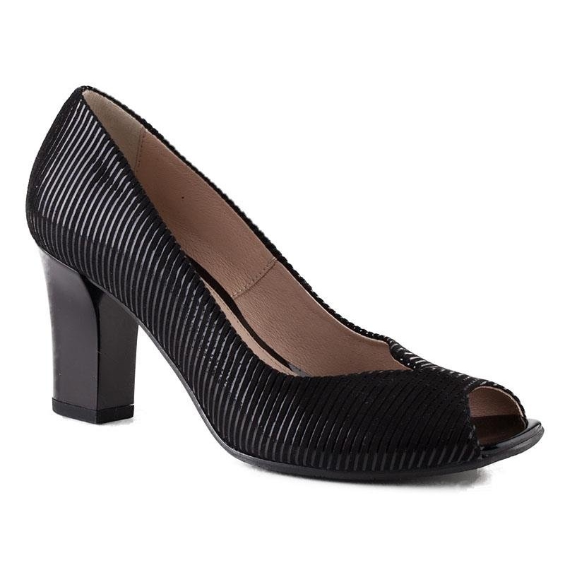 Marco Shoes Marco Shoes mustat nahkaiset raidalliset pumput