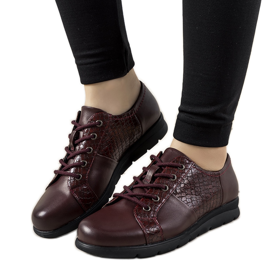 Esittelemme viininpunaiset Olmos naisten kengät ylellisessä punaisessa sävyssä, jotka täydentävät täydellisesti minkä tahansa tyylin. Nämä korkealaatuisesta ekologisesta nahasta valmistetut kengät erottuvat tyylikkäistä krokotiilinahkaisista sisäosista, jotka antavat niille ainutlaatuisen luonteen.