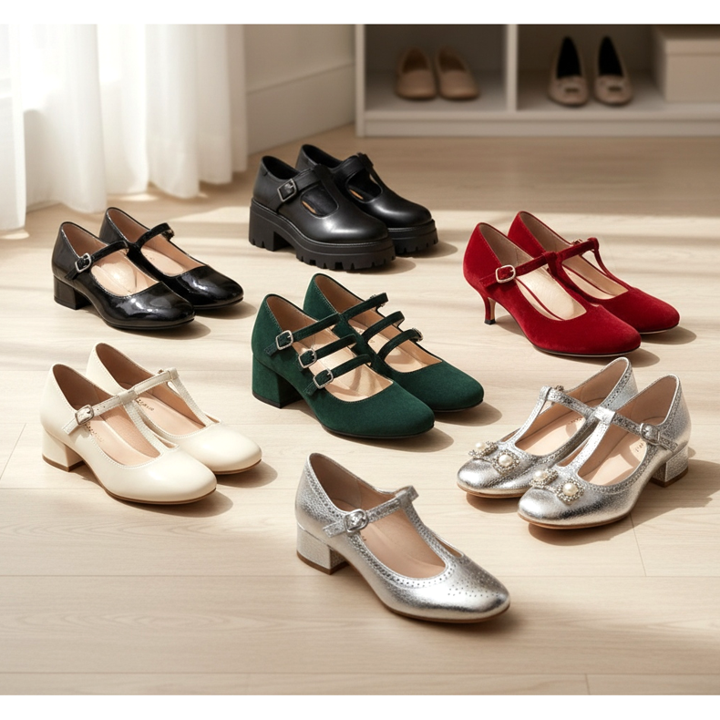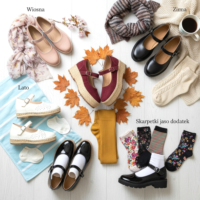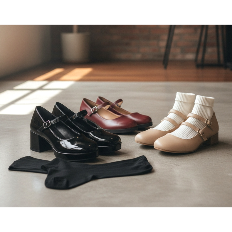 Talvi vaatii lämpimämpiä versioita. Nahkainen Mary Janes, jossa on paksumpi pohja, käytetty villasukkien kanssa, toimii hyvin sisätiloissa. Turkisvuorilla varustetut mallit antavat lisälämpöä.