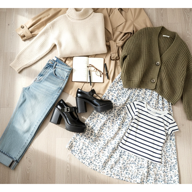 Mekot ja hameet ovat Mary Janen luonnollisia kumppaneita. Ilmava kukka-aiheinen midihame, yksinkertainen toppi ja tasapohjainen Mary Jane ovat valmiita muotoiluja lämpimään kevätpäivään. Jos lämpötila laskee, lisää asuun mukava neuletakki tai ohut trenssitakki.
