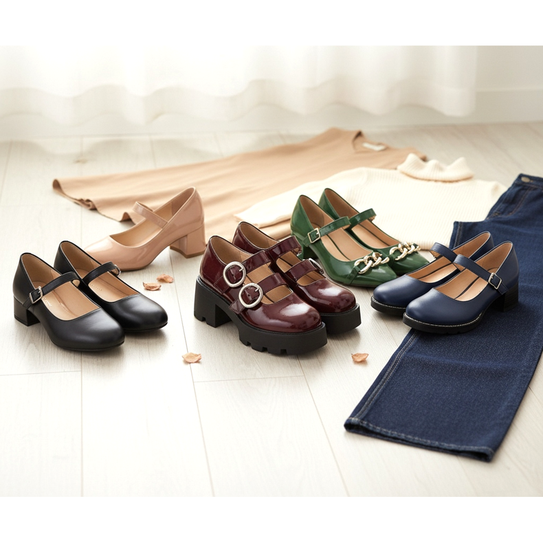 Retrotyylin ystäville Mary Jane pyöristetyllä varpaalla ja matalalla lohkokorolla on täydellinen valinta. Tämä klassinen leikkaus tuo mieleen 1960-luvun muodin ja sopii täydellisesti A-linjaisten mekkojen, villapaita ja suoria leveälahkeisia housuja.