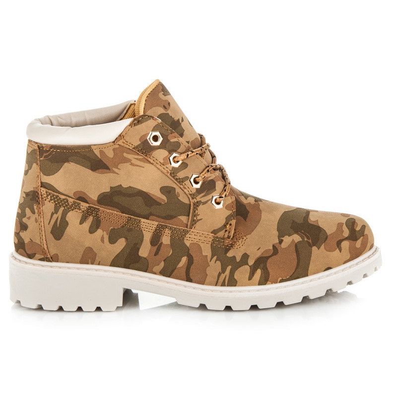 Muovipohja suojalla ja 3 cm korkea tasainen kantapää takaavat vakauden jokaisessa vaiheessa. Pyöreä kärki ja pehmeä, sisäänrakennettu kantapää tekevät näistä saappaista paitsi käytännöllisiä myös tehokkaita. Naamiointikuvio lisää luonnetta ja sopii täydellisesti rennon tyyliin.