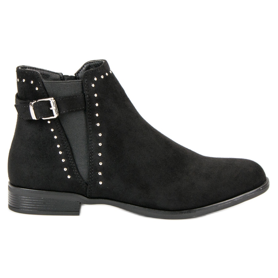 Löydä poikkeuksellinen tyyli ja mukavuus Super Me -brändin matalilla syksyn saappailla. Näissä eleganteissa mustissa saappaissa yhdistyvät klassinen estetiikka rockyksityiskohtiin, kuten strasseihin, jotka antavat niille ainutlaatuisen luonteen. Nämä korkealaatuisesta ekologisesta mokkanahkasta valmistetut kengät eivät vain näytä hyvältä, vaan tarjoavat myös maksimaalisen mukavuuden joustavan pohjan ansiosta, joka mukautuu täydellisesti jalkasi liikkeisiin.