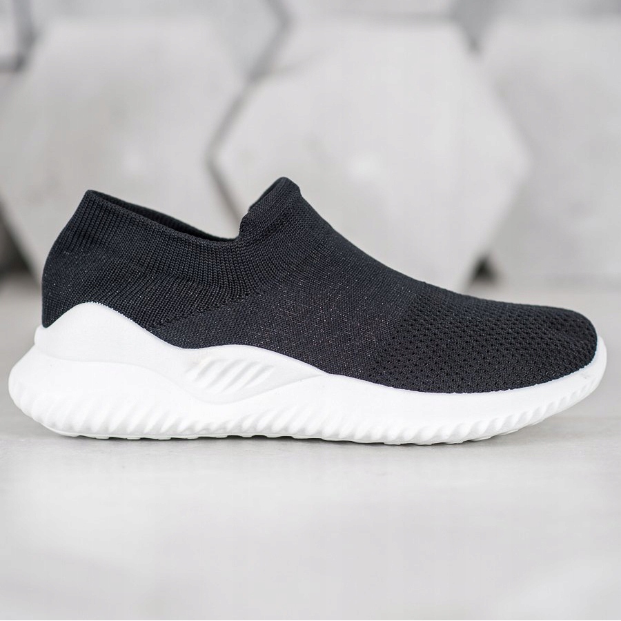 Erittäin mukava valkoinen, laadukkaasta muovista valmistettu pintapohja erottuu hyvin mustan harjakuvioisen kankaan kanssa, mikä antaa kokonaisuudelle modernin ilmeen. Pyöreä kärki ja pehmeä, sisäänrakennettu kantapää takaavat käyttömukavuuden, ja 4 cm:n alustakorkeus lisää hienovaraista nostoa.