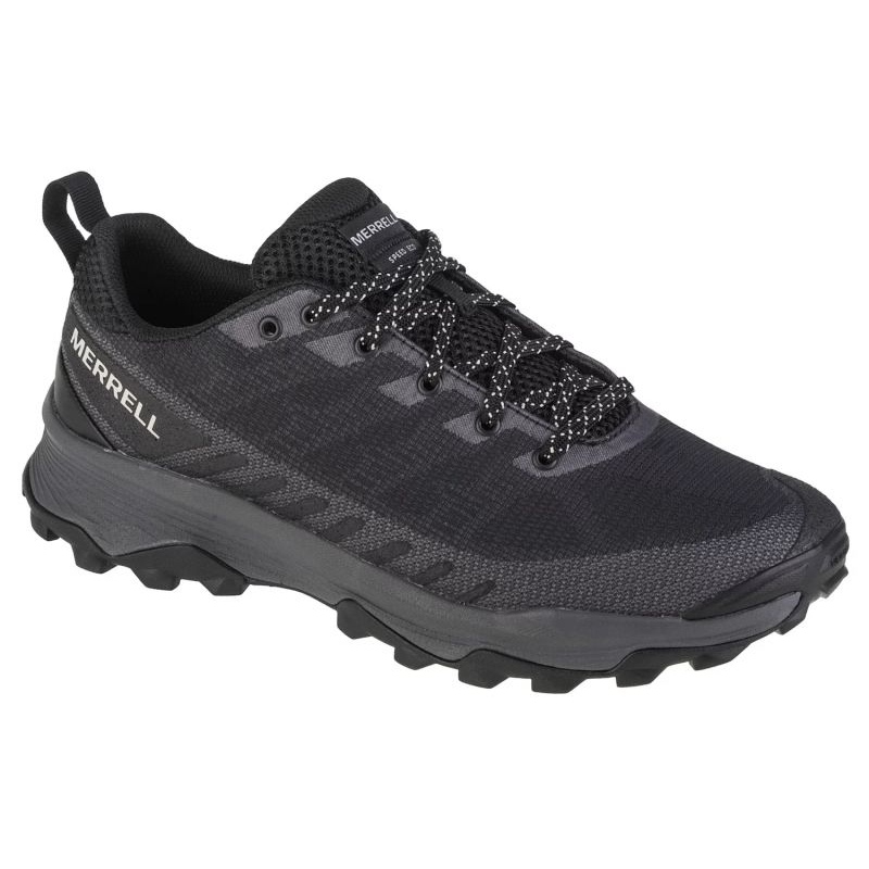 Moderni, matala Merrell -kengät, jotka on luotu vuoren vaellukselle ja ulkoiluun. Musta, hillitty muotoilu yhdistyy käytännön ratkaisuihin: synteettisistä materiaaleista valmistettu kestävä ylempi, tekstiilivuori ja kiinteä pohja, jolla on paksu kulutuspinta, varmistavat mukavuuden ja vakauden epätasaisella maastolla.