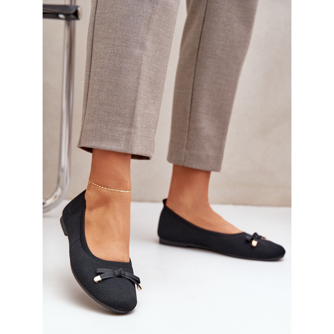 Mesh -balleriinit, joissa on musta jousi, on ehdotus naisille, jotka arvostavat tyyliä ja mukavuutta. Kevyestä silmämateriaalista valmistettu nämä balleriinit ovat täydellisiä lämpimiin päiviin, mikä varmistaa riittävän jalan tuuletuksen. Jalkineiden etuosaan asetettu hienovarainen jousi antaa heille herkkyyttä ja naisellinen viehätys.