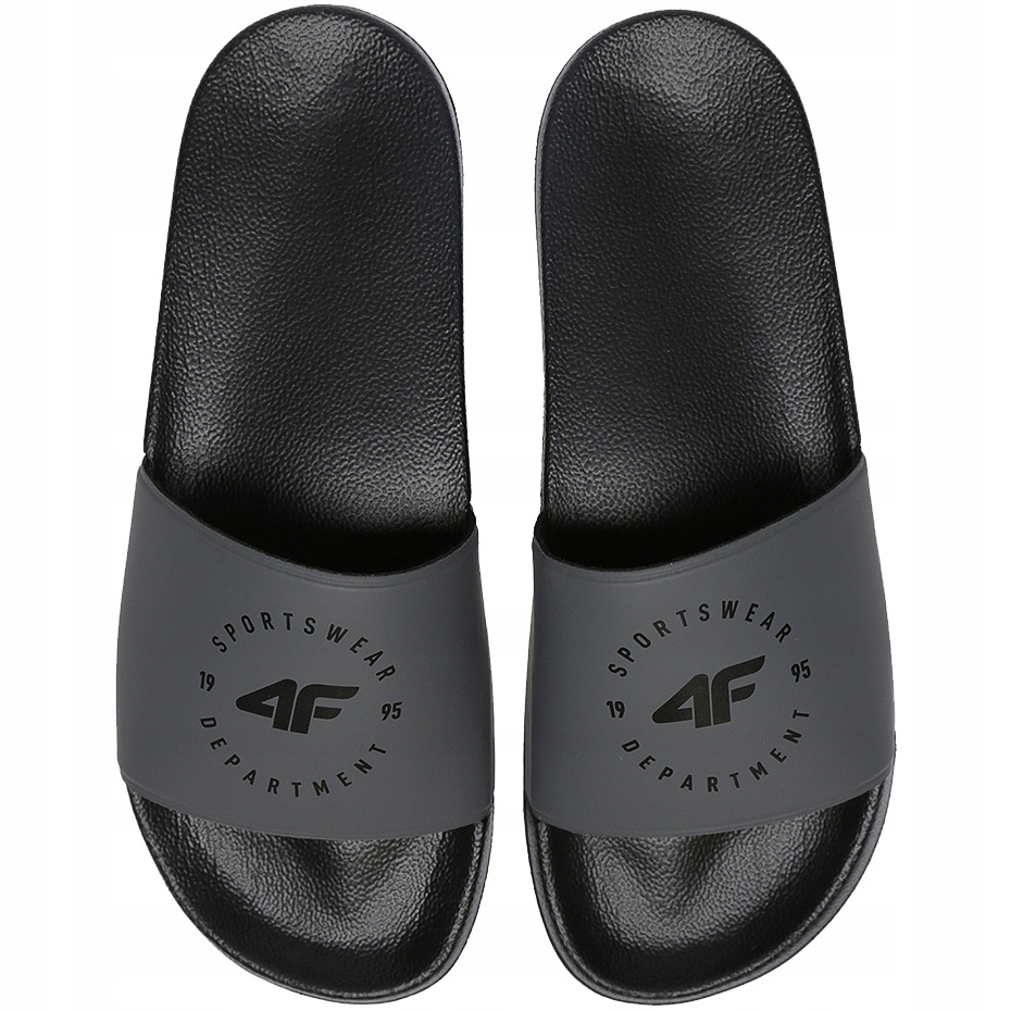 Harmaa 4F -läppä on käytännöllinen valinta rannalle, uima -allas ja päivittäiset kesämatkat. Heillä on kuvioitu, profiloitu insertti, joka mukautuu hyvin jalkaan ja parantaa vakautta. Pehmeällä jerseyllä vuorattu synteettinen yläosa tarjoaa miellyttävän tunteen kosketuaan ihoon ja pohja, jossa on pehmeästä vaahtovaahto, takaa pienen painon ja optimaalisen tyynyn.