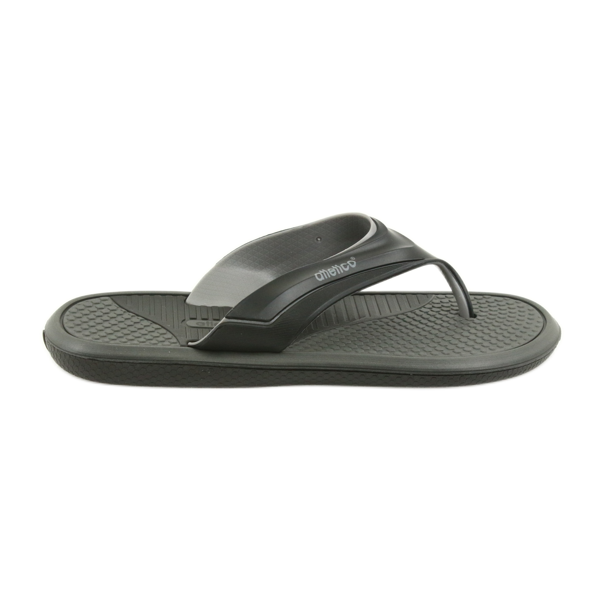 Miesten mustat Atletico varvastossut ovat täydellinen valinta kaikille mukavuutta ja modernia muotoilua arvostaville miehille. Nämä tyylikkäät varvastossut dominoivassa mustassa värissä harmailla korosteilla sopivat täydellisesti sekä uima-altaalle että jokapäiväiseen käyttöön kotona tai kesälenkillä.