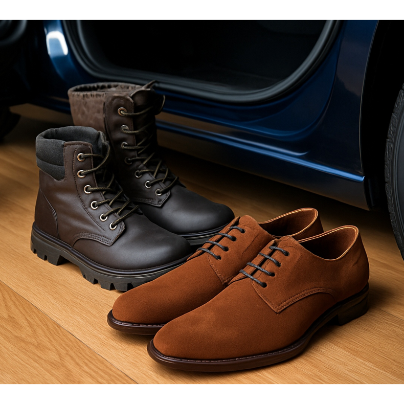 Jos haluat jotain universaalimpaa, valitse Chukka-saappaat tai Chelsea-saappaat, joissa on ohuempi mutta liukumaton pohja. On tärkeää, että kenkä ei jäykistä nilkkaa tarpeeksi estääkseen jalan vapaan liikkeen. Luonnonnahka on tässä paras valinta - se mukautuu jalkaan ja "hengittää", mikä on ratkaisevan tärkeää, kun auton lämmitys käy täydellä nopeudella.