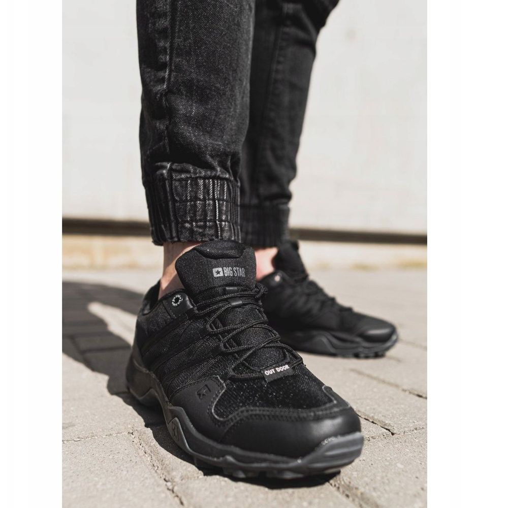 Miesten Big Star Trekking -ulkoilukengät mustat EE174456 ovat ihanteellinen tarjous kaikille aktiivisen ulkoilun ystäville. Näille vankkaille vaelluskengille on ominaista kestävä työstö, jossa käytetään tekstiilimateriaaleja ja ekologista nahkaa, mikä takaa käyttömukavuuden lisäksi myös tuotteen kestävyyden.