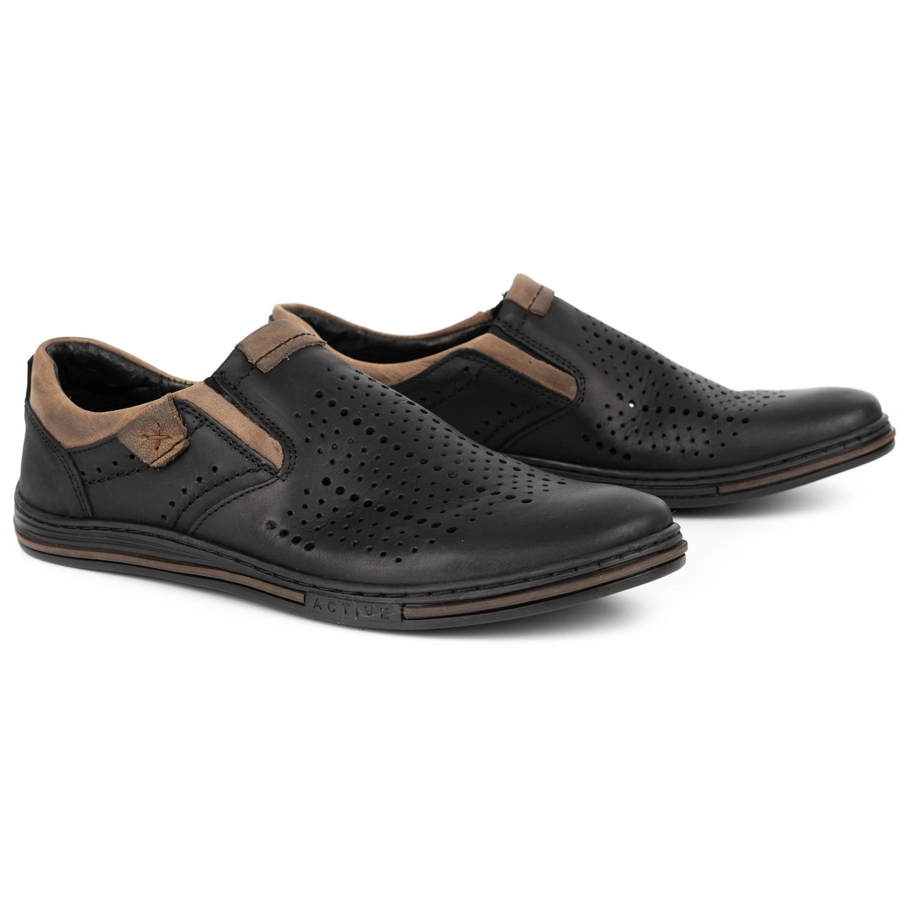 Tyylikkät ja käytännölliset miesten kengät, jotka on valmistettu kokonaan luonnon nahasta - täydellinen lämpimämmille kuukausille. Avointyökuvio tarjoaa ilmanvaihdon, ja klassiset mustat värit tekevät mallista helposti vastaamaan monia tyylejä.