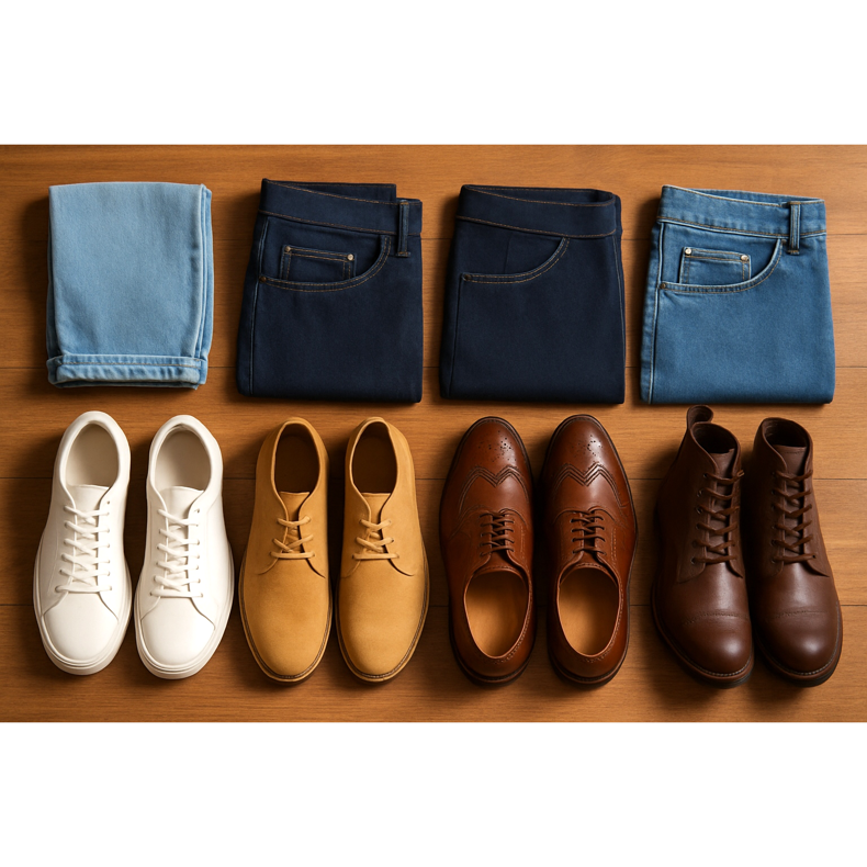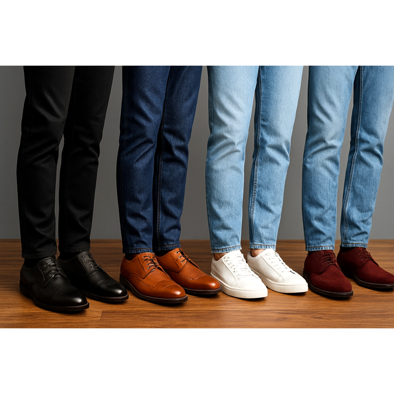 Täydellinen opas miesten kenkien valintaan erilaisiin farkkutyyleihin. Opi muotoilun säännöt slim fitistä laukkuun ja löydä täydelliset yhdistelmät.