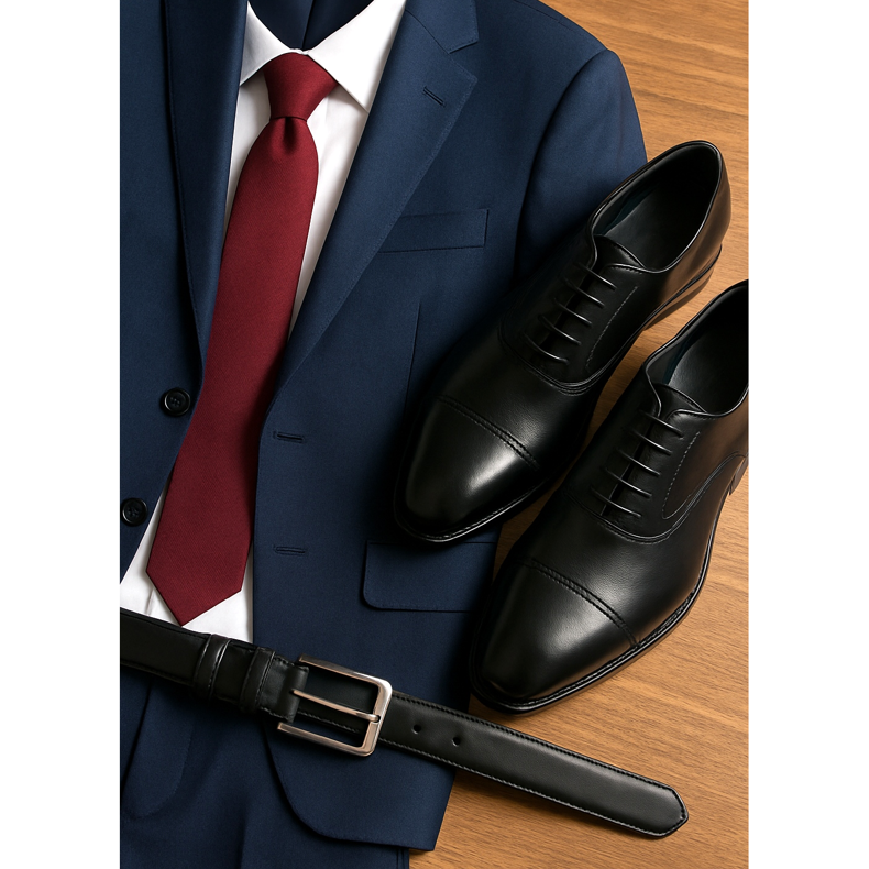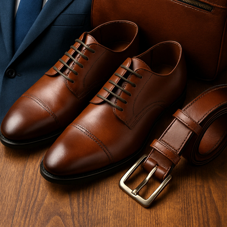 ✓ Tummanruskeat Oxford/Derby-kengät (tummansinisen tai harmaan puvun kanssa)