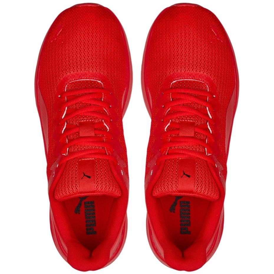 Moderni, kevyt juoksu- ja harjoituskengät PUMA -tuotemerkistä - mallin kuljetus moderni ilmeisellä punaisella versiolla. Suunniteltu päivittäiseen kovaan pintaharjoitteluun, ne yhdistävät hengittävyyden ja mukavuuden kiinteän jalkapidon kanssa.
